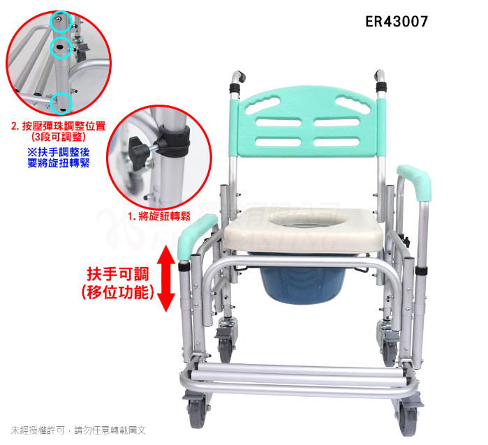 恆伸 鋁合金有輪便器椅ER-43007