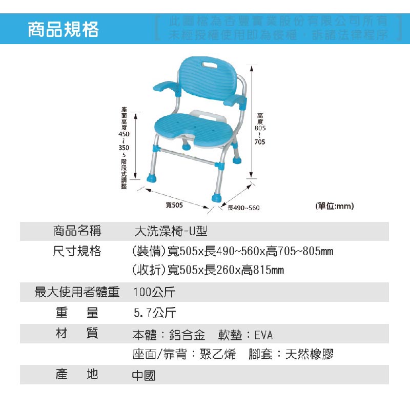 •U型凹槽椅面-方便照護者的腳站立、縮短雙方距離也能協助被照護者的局部清洗