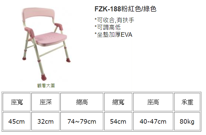 FZK-188 洗澡椅 粉紅色/綠色
