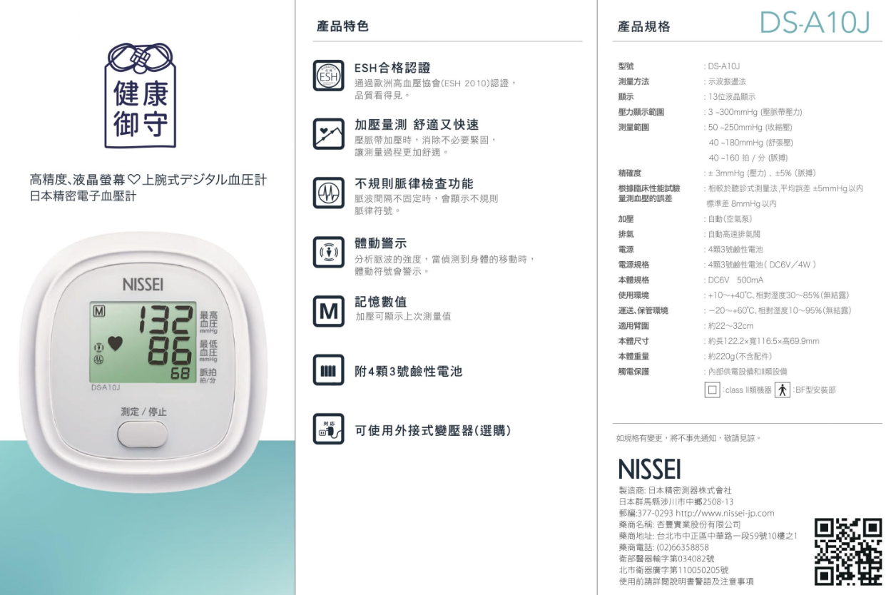 醫療器材許可證所載品名:“日本精密”電子血壓計