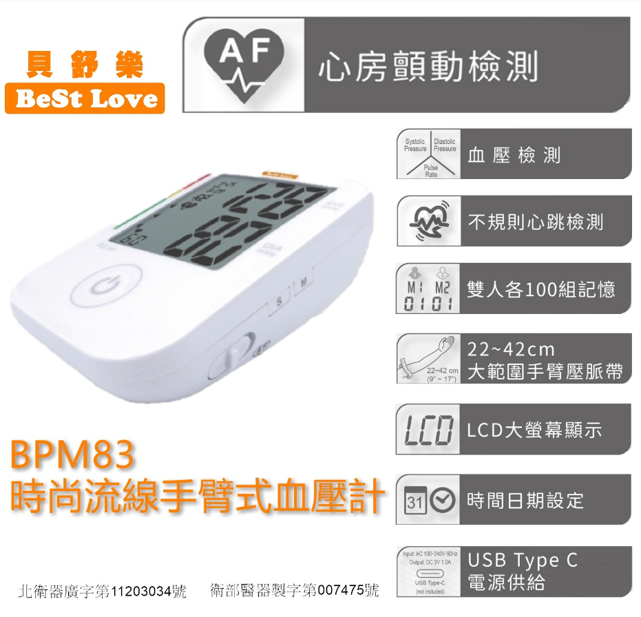 貝舒樂BPM83手臂式電子血壓計
